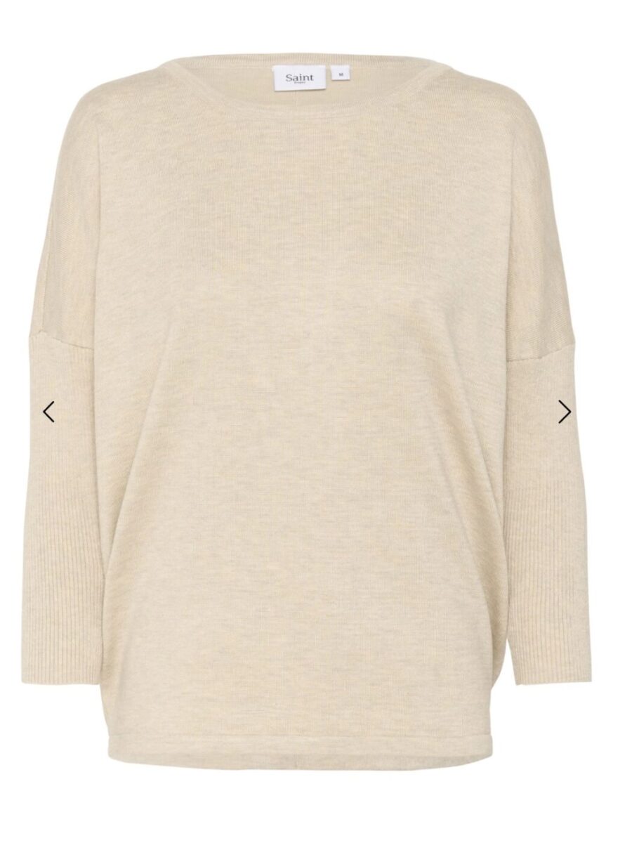 Soft, comfortable and classic, this fine knit has bat wing, cropped, fitted sleeves, a scoop neck and a raised vertical seam at the back. A very useful and versatile piece which can be worn alone or is great layered under a blazer or jacket. A fantastic transitional piece.