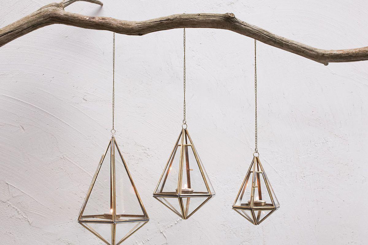 These elegant Mokomo hanging lanterns are handmade from brass. The lanterns combine a sense of tradition with contemporary design. A t-light fits neatly within and provides a pretty and atmospheric light perfect for cosy evenings. Choose from two sizes or mix and match for an eclectic display.