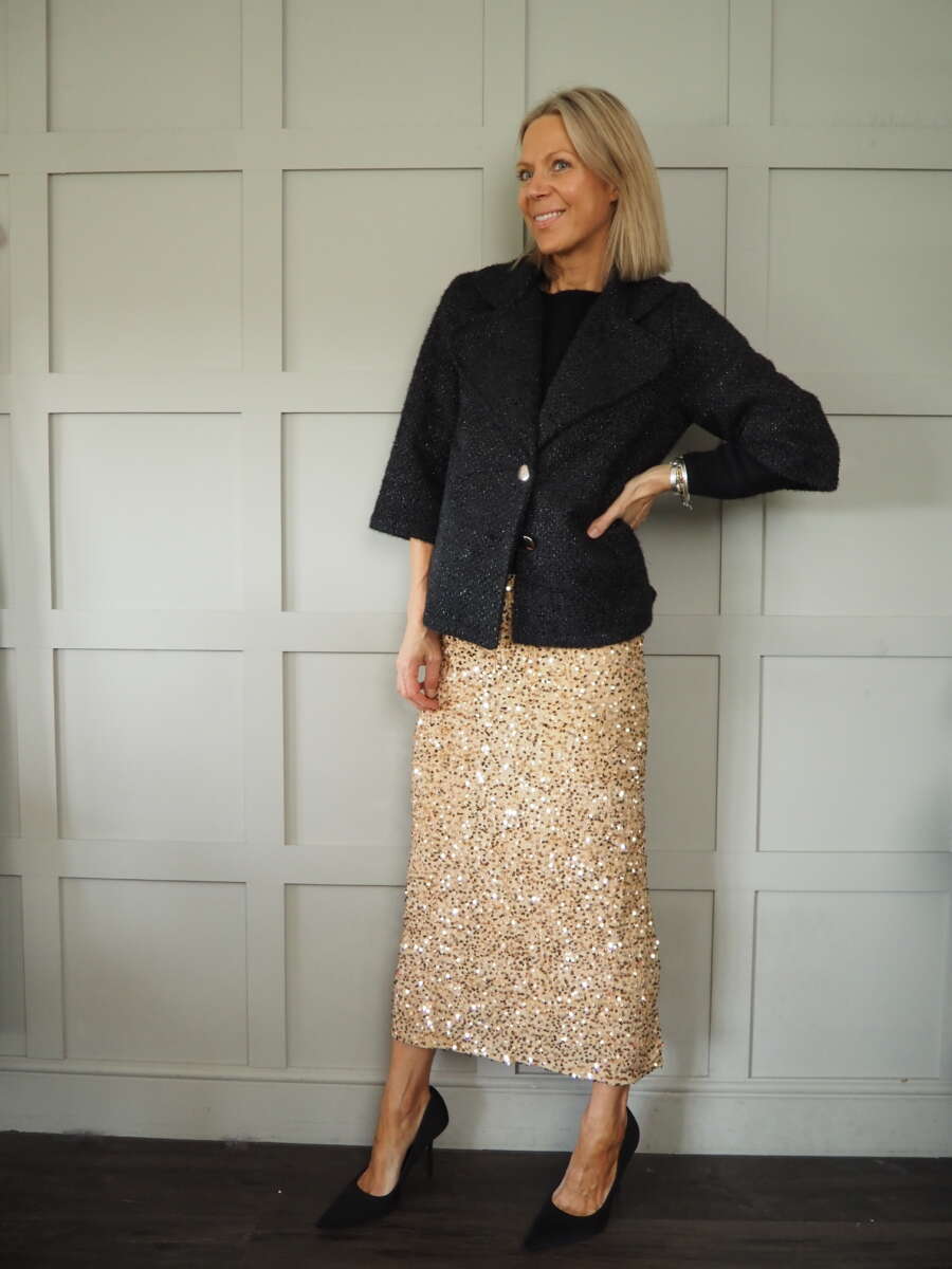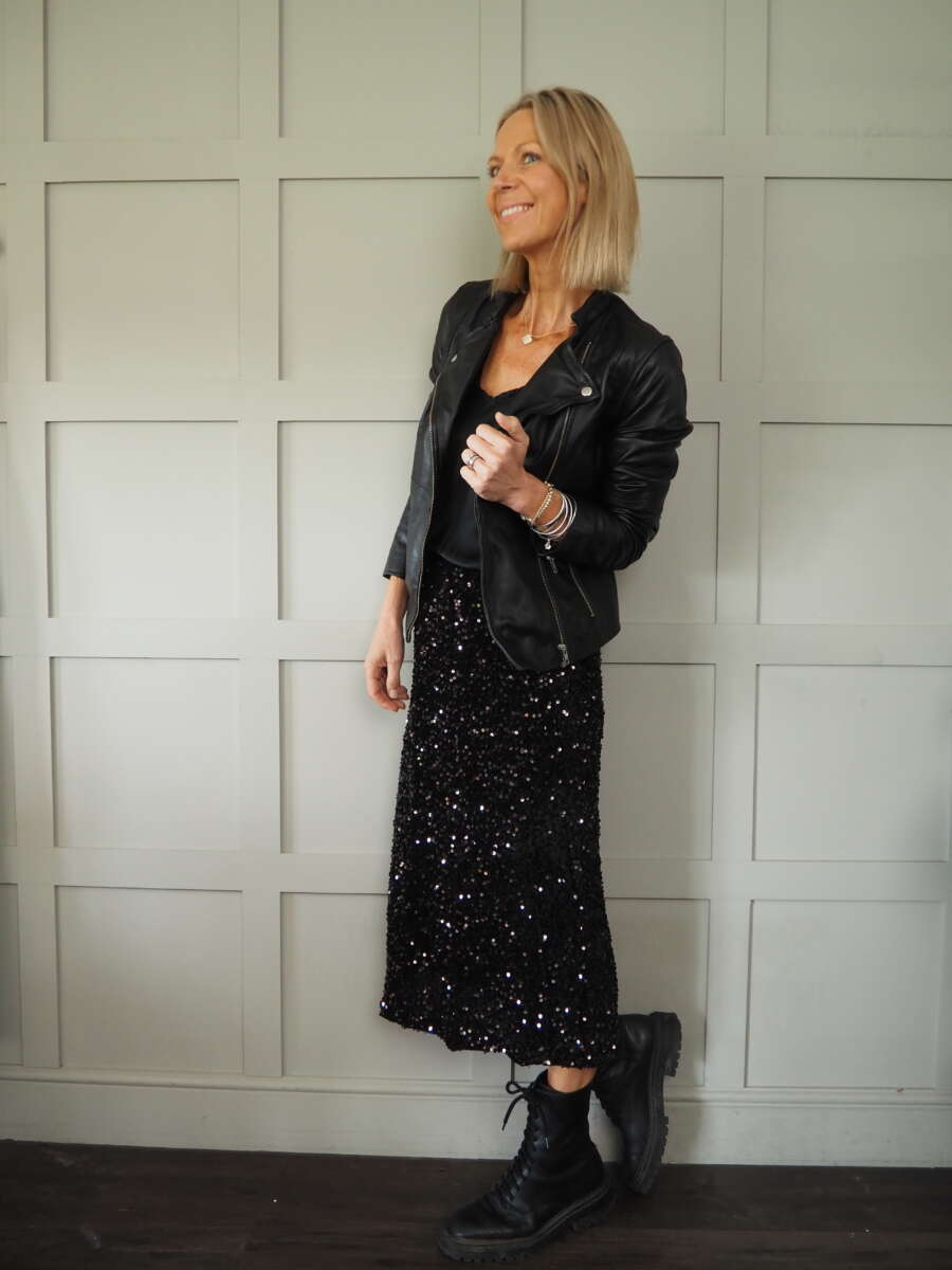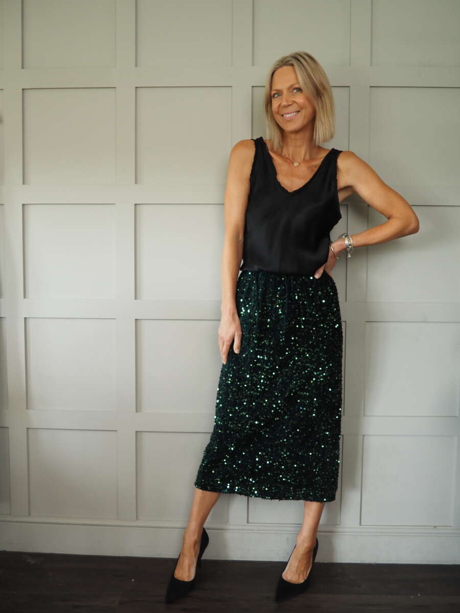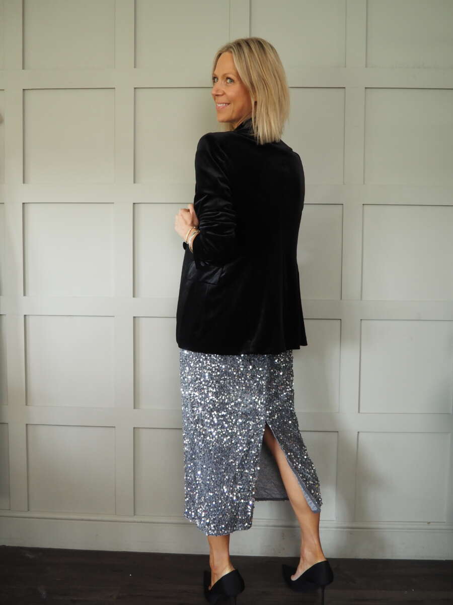 These fabulous sequin skirts are perfect for all year round. They are a fun piece which can be worn casually with chunky boots, a knit & a leather jacket but they are obviously fabulous dressed up for a special occasion, a night out or party season! This statement sequin skirt has a slit at the back and would work on a variety of heights.