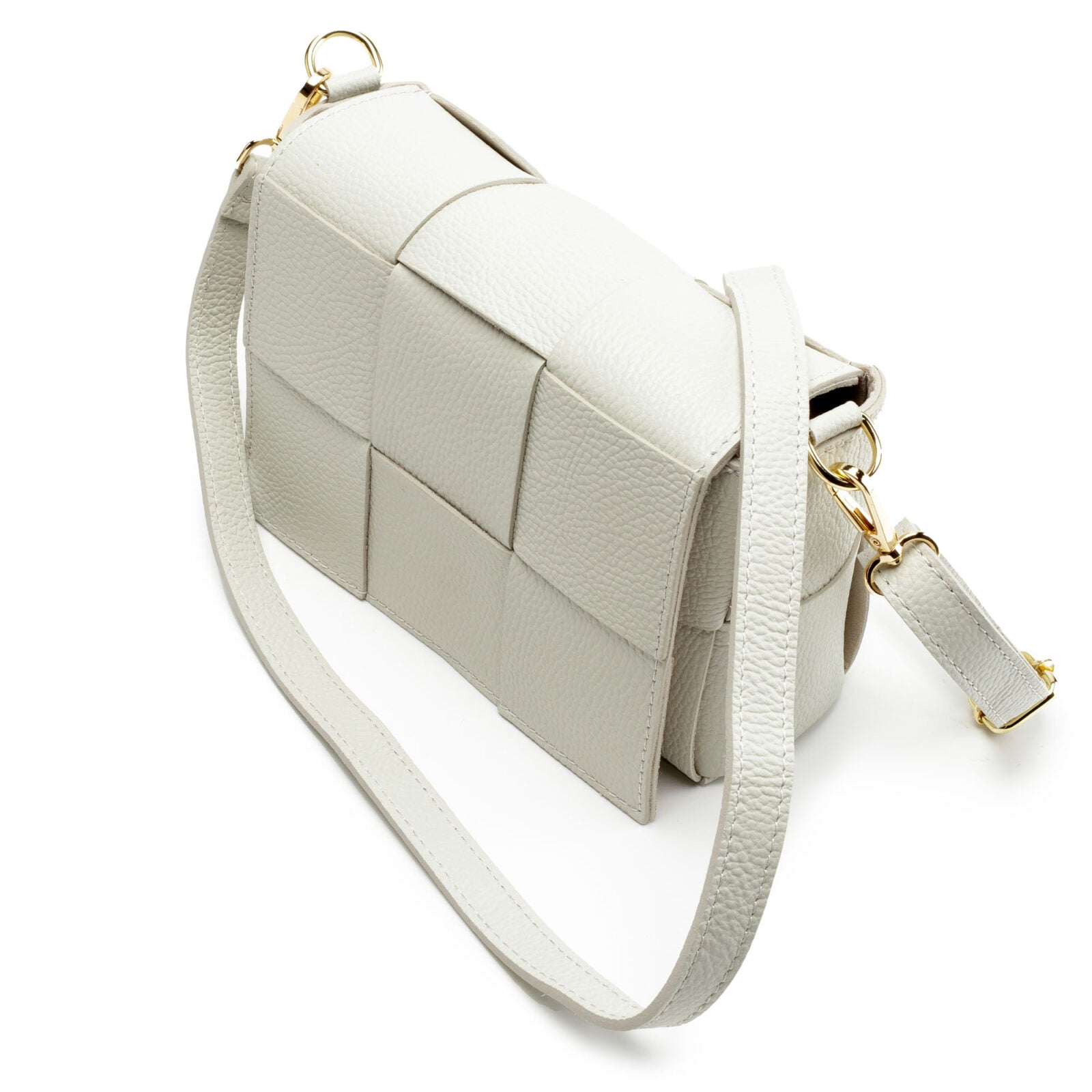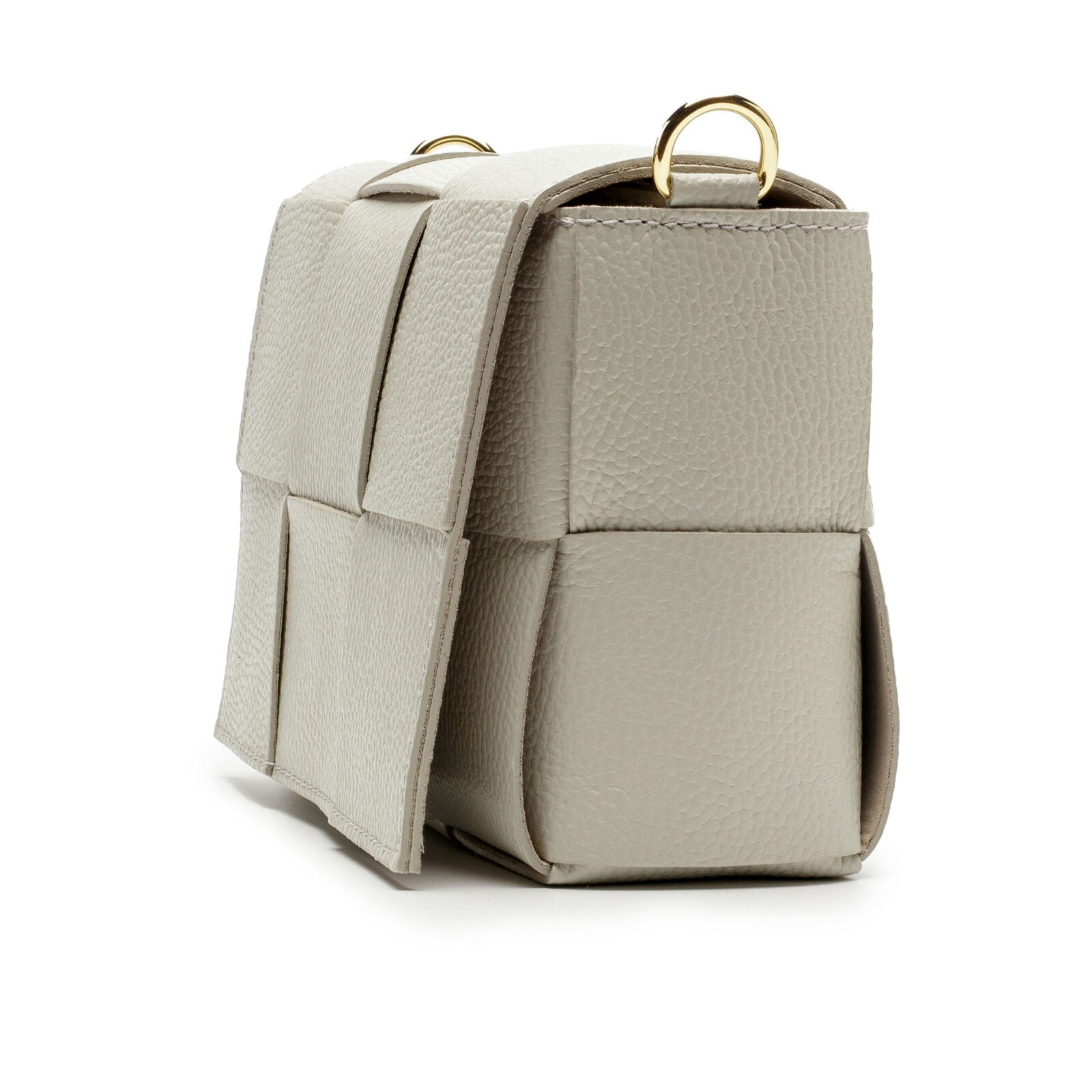 Patchi Crossbody & Clutch Leather Bag with Square Woven Design - Stone