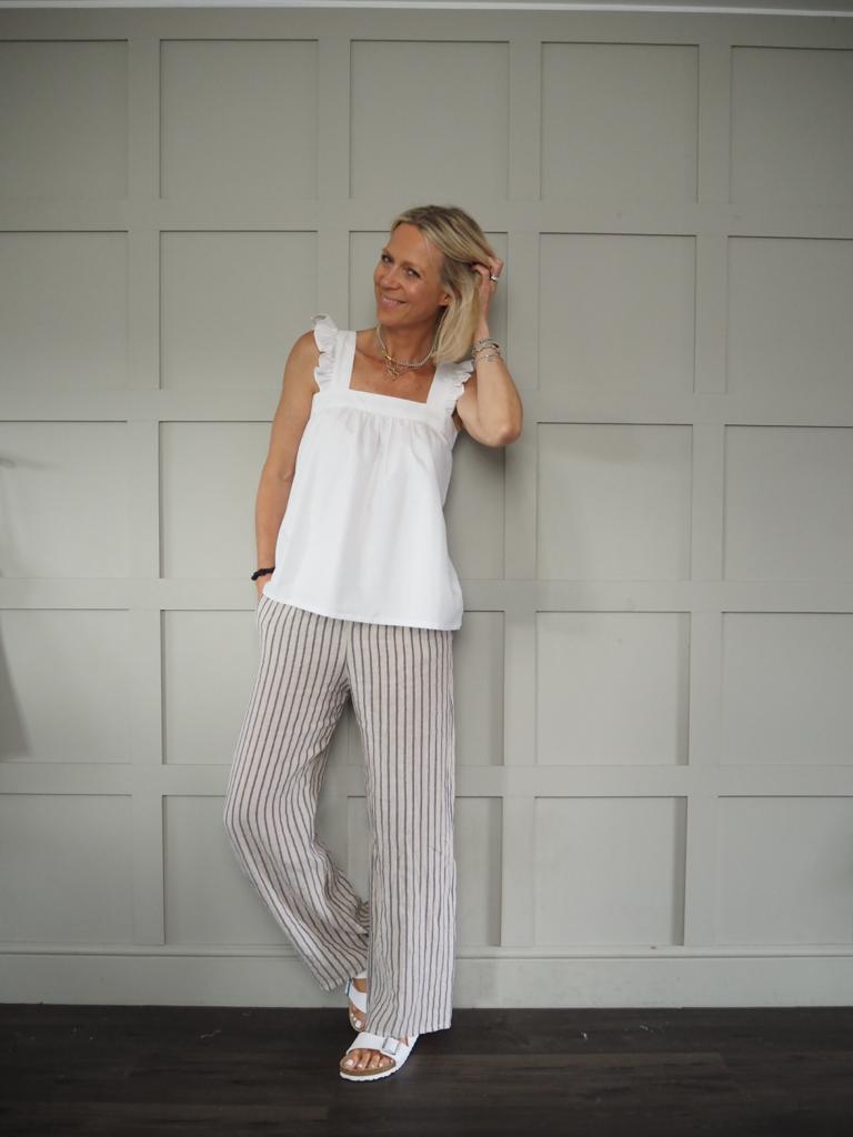 This stunning vest with square neck and ruffle detail is made to a superior quality, hand made in France, and looks gorgeous with jeans.