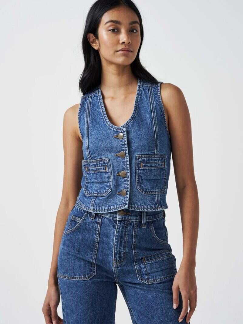 Seventy and Mochi’s newest jeans to the family – and she’s a keeper! Pair with the matching Bea waistcoat for our take on denim suiting at its best. They are high-rise soft flare with retro patch pockets.