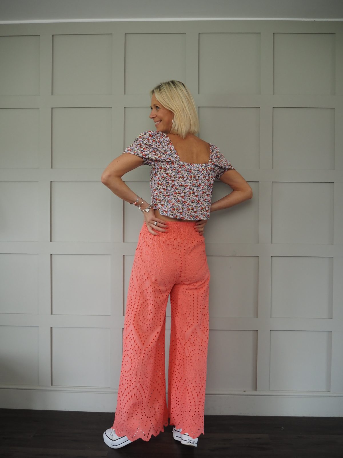 Worn here with the Penelope Broderie Anglaise wide leg trousers.